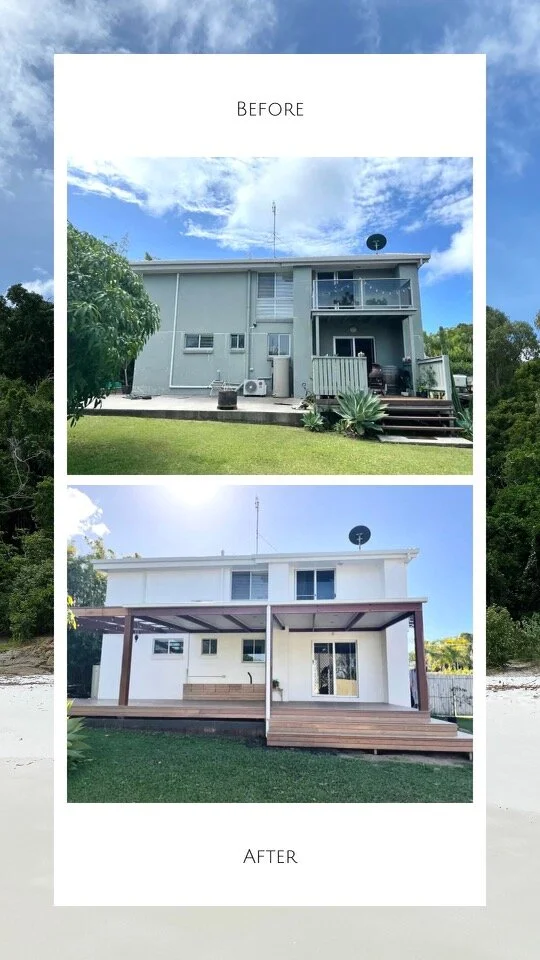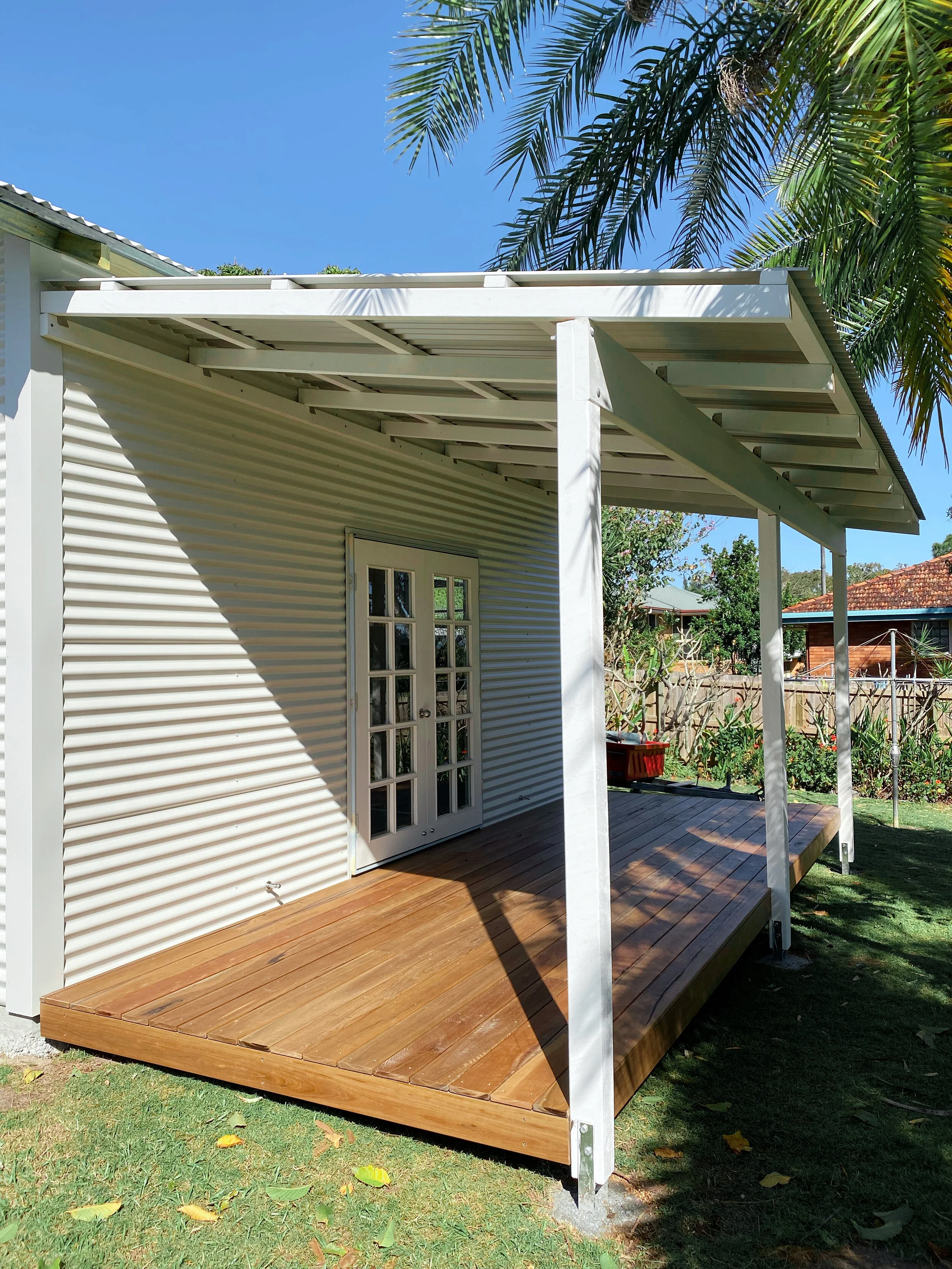 Before and After White Mahogany decking and Red ironbark Posts/Rafters